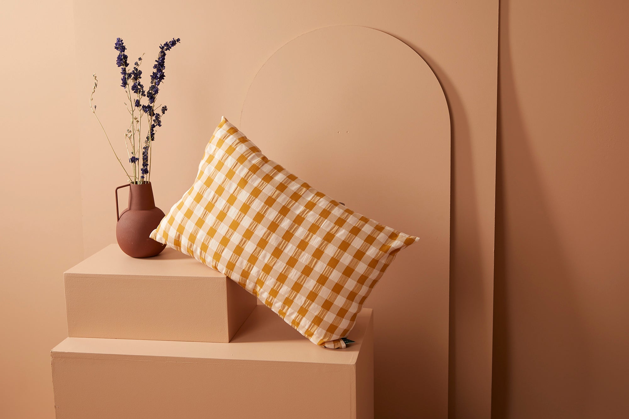 Housse de coussin rectangulaire - Vichy camel