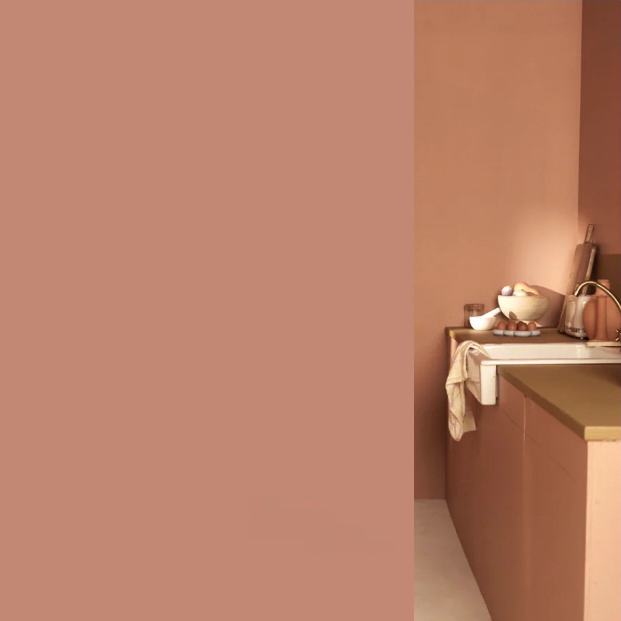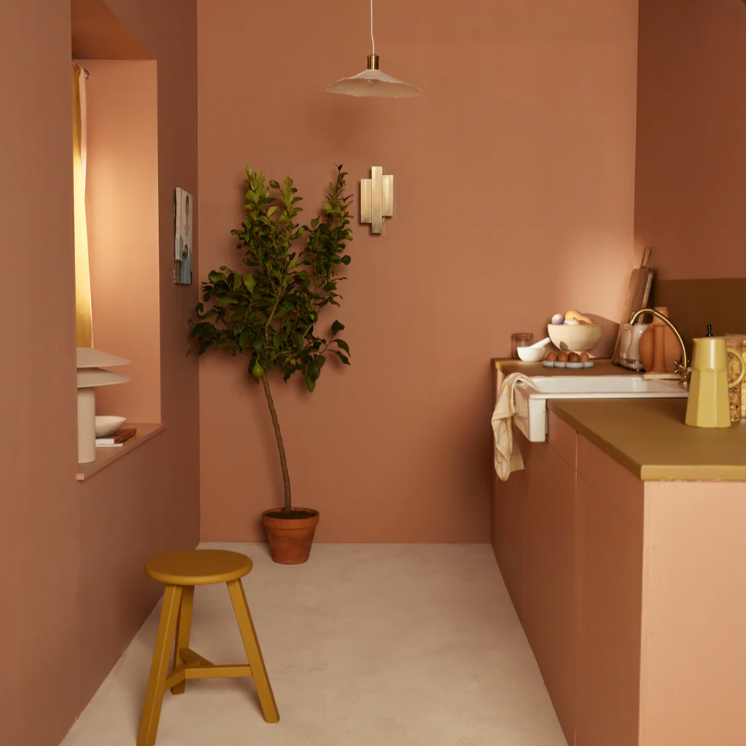 Un rose, travaillé avec une pointe de orange pour la chaleur, une pointe de kaki pour un aspect terre, et du rouge vif pour réveiller tout ça !
